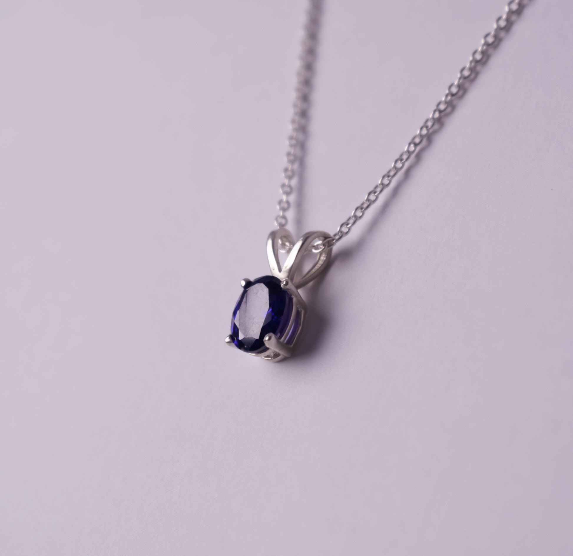 Elevate your style with this Blue Oval Pendant Necklace crafted in 92.5 sterling silver. The pendant features a brilliant deep blue gemstone set in a sleek silver frame, adding a touch of luxury and sophistication to your look. Perfect for both everyday wear and special occasions, this sterling silver jewelry piece combines timeless elegance with modern minimalism.