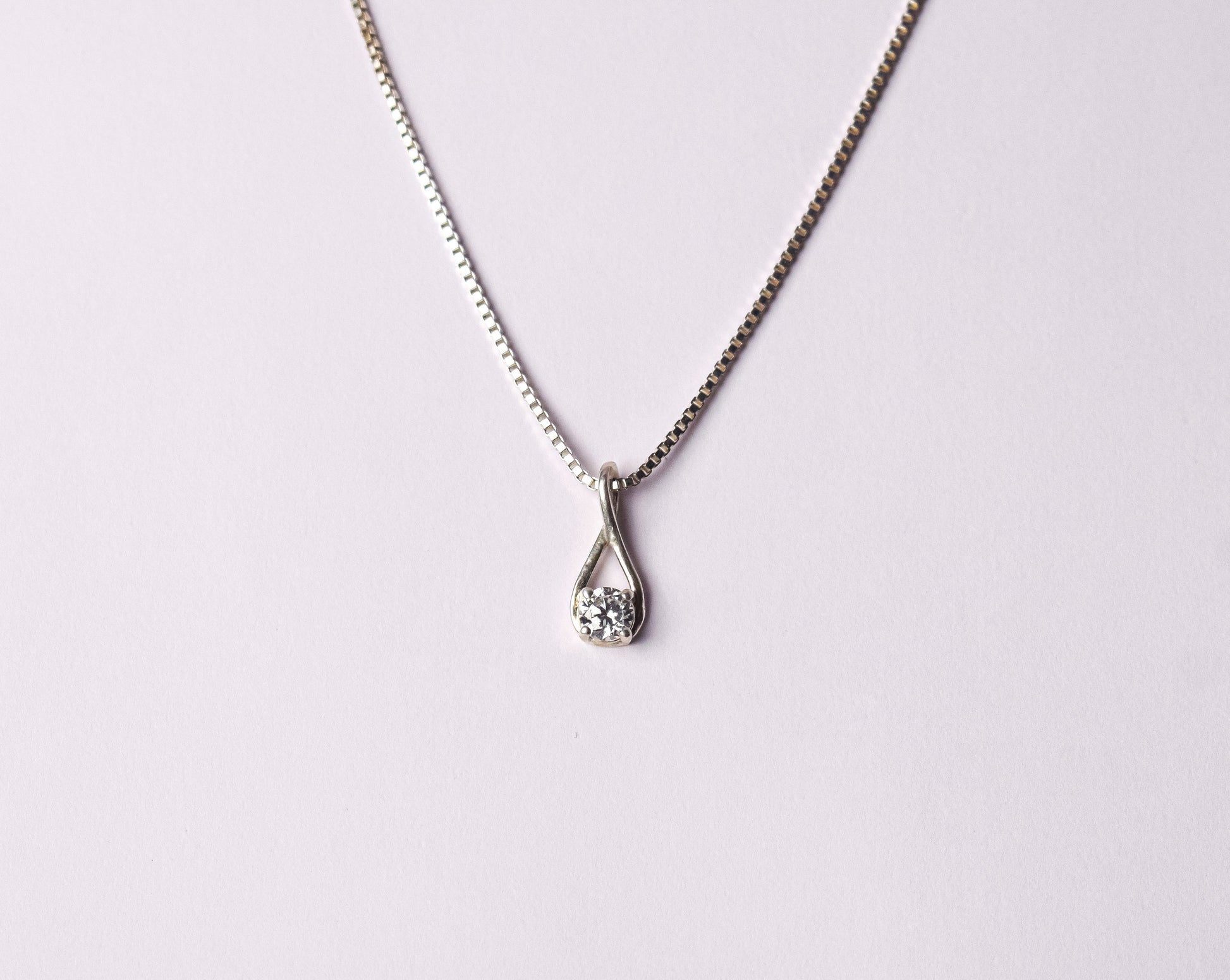 Finished with a high-polish, tarnish-resistant rhodium plating, the pendant is suspended from a delicate sterling silver chain, ensuring it rests perfectly on the neckline. It is hypoallergenic and nickel-free, designed for comfortable, everyday luxury. This necklace is the perfect accessory for adding a touch of sophisticated sparkle to any outfit, from casual wear to evening attire.